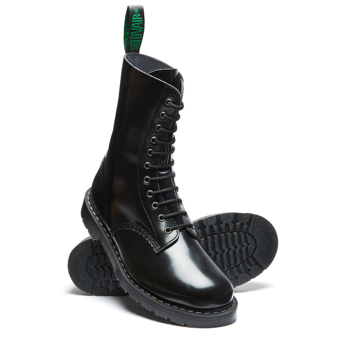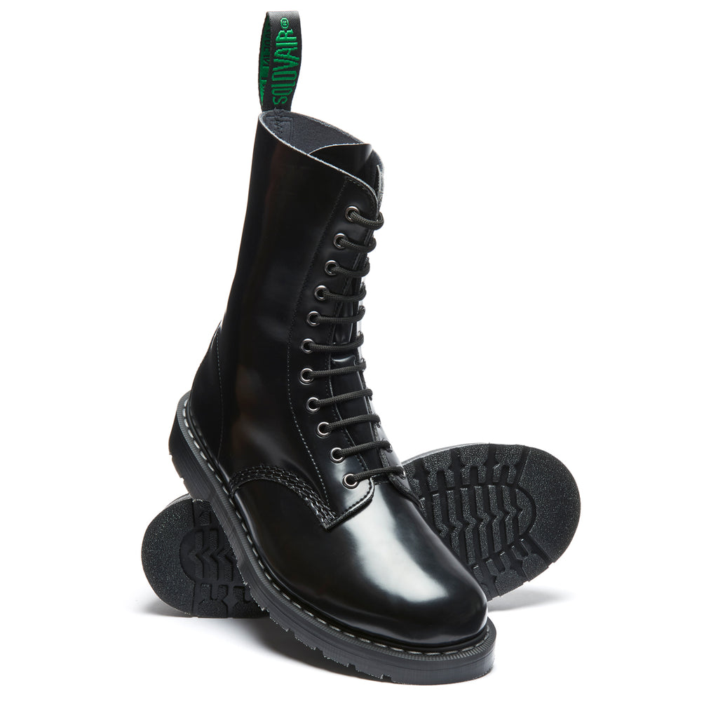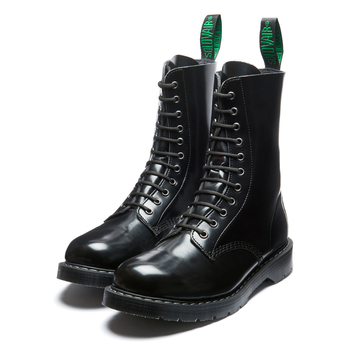 Black Vegan Hi-Shine 11 Eye Derby Boot