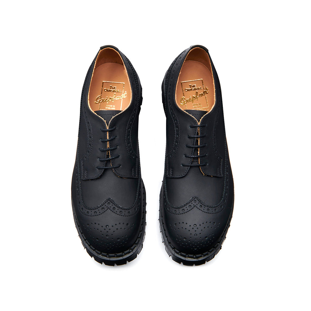 Black Greasy Steel Toe American Brogue Shoe